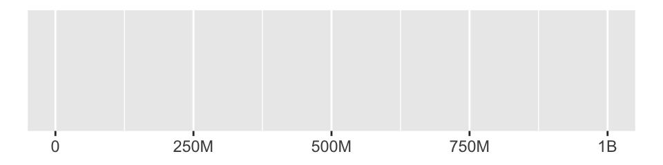 label_number_si()formats numeric vectors with SI units.1 2demo_continuous(c(1, 1e9), label = label_number_si()) #> scale_x_continuous(label = label_number_si())